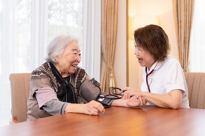 看護職員を24時間配置*し、急な体調変化を見逃さないよう、夜間の医療的ケア(診療の補助)にも対応しています。お一人おひとりのお気持ちに寄りそった日々の健康管理に努め、安心感に包まれてお過ごしいただけるよう、かかりつけ医やサービススタッフと情報共有・連携しながら、お手伝いいたします。