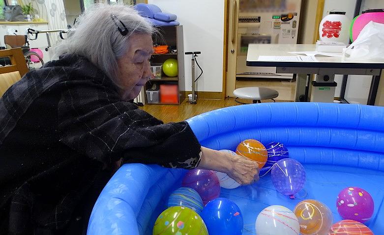 2025.09.14夏祭り~風船すくい編~先月の終わりに夏祭りを開催しました。こちらは風船すくいのご様子です。色とりどりの風船をご覧になりながら、「あれがいいわ」「やっぱりこっちがいいかも」としっかり手を伸ばして楽しそうに選ばれていました。なかには2個目にトライしようとされる方もいらっしゃり、大好評でした!