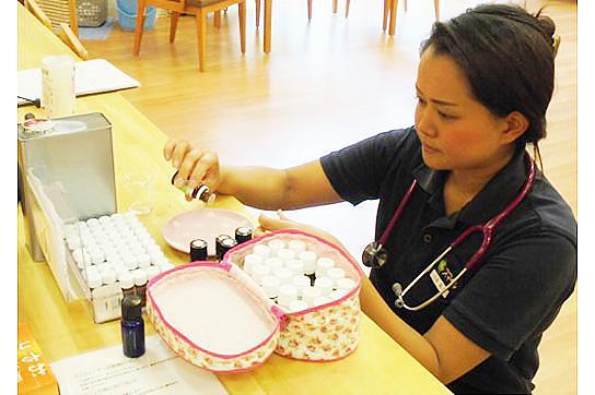 ホーム内に広がるアロマオイルの香り お一人おひとりに合わせたアロマを積極的に取り入れ、さまざまな効果を促進
