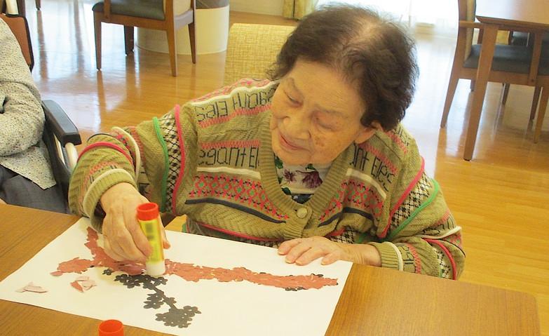 2025.08.20桜の木の貼り絵が完成!数ヶ月前から取り組まれていた貼り絵の作品がついに完成しました!2階と3階のリビングルーム兼食堂兼機能訓練室に展示しています。作成してくださったご入居者様に「すてきですね」とお声がけすると、笑顔で「ありがとう」とおっしゃってくださいました。