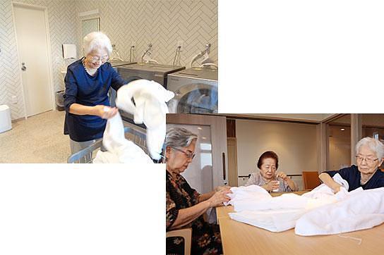洗濯をされるご入居者様 ご自身でできること・できそうなことはしていただき、「自分らしい暮らし」を。