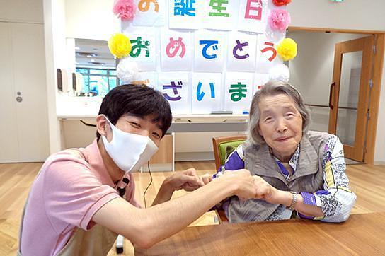 サービススタッフとご入居者様 365日24時間サービススタッフ・365日日中看護職員配置。見守られている安心感を。