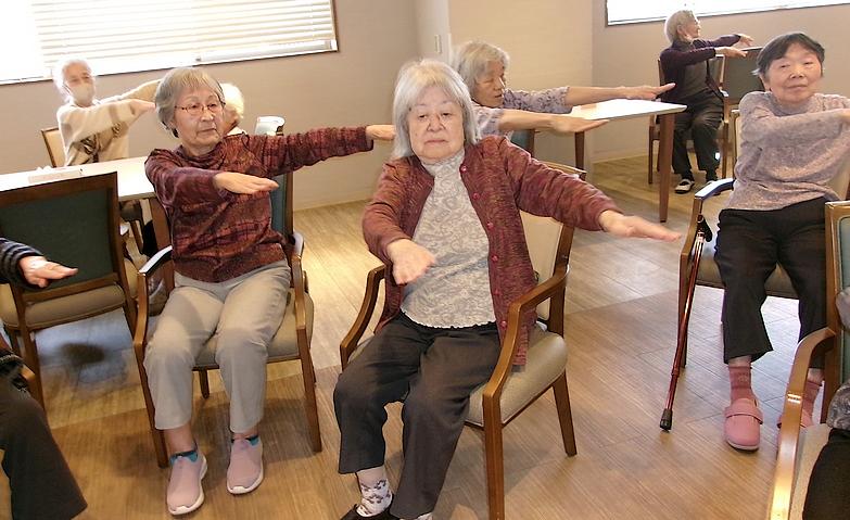 機能訓練指導員が作成する個別のプランのもとに行う個別リハビリでは、お身体の状態やご要望に合わせて、生活の質(QOL)の向上を目指した多様なプログラムを機能訓練指導員がご提案。このほかにも、足腰が不安な方の筋力維持を目的とした体操や、リハビリ機器を使用した運動などを通して機能向上や精神面(こころ)のサポートを図ります。歩行訓練などは、機能訓練指導員の作成したリハビリプランのもと介護職員が行い、安心感のある生活を送っていただけるようお手伝いをさせていただきます。