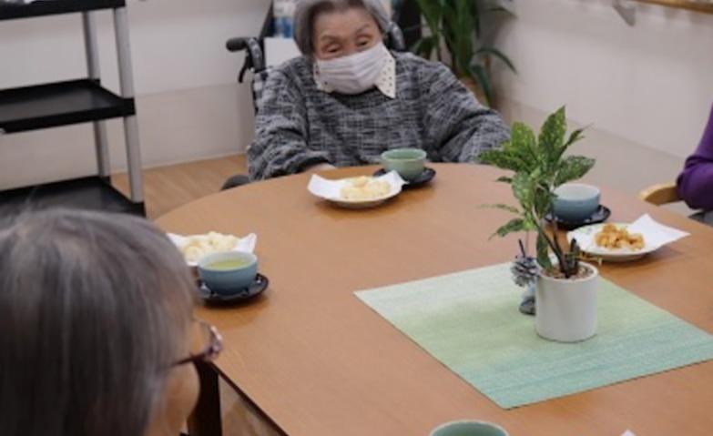 ホームの近くのくじら公園へ出掛け、お茶を飲みながら四季の移り変わりを楽しんだひとときです。今後も、外の空気に触れ季節を感じながらお過ごしいただける時間を増やしていきたいと思っています。
