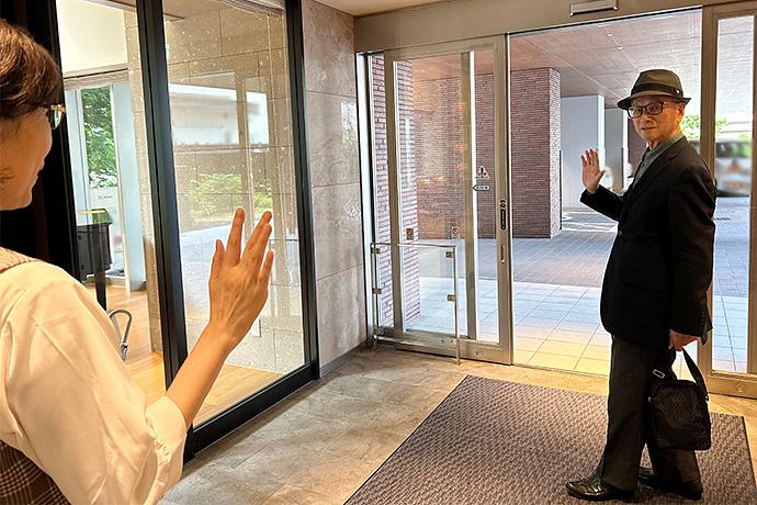 ご入居者様が外出されるご様子 ご入居者様の外出・外泊、ご家族様のご来訪も可能です。