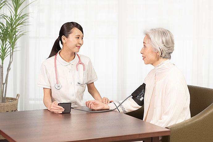 看護職員を24時間配置し、ご入居者様のかかりつけ医の指示のもと、夜間のたん吸引や胃ろうなど医療的ケア(診療の補助)の対応が可能なホームです。看護職員が専門的な視点を持ってお話をうかがったり、体調の変化を見逃さないようにしながら、かかりつけ医や介護職員と連携し、皆様の日々の健康管理に努め、皆様の快適な日常をサポートいたします。