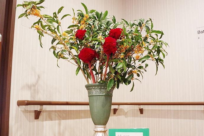 ダイニングルーム前のお花 生活リハビリのご提案に力を入れています