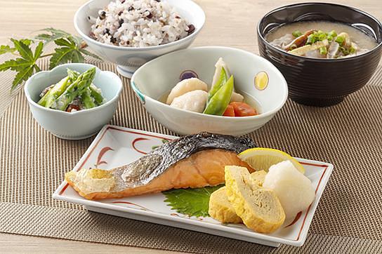 通常食(和食)一例 日々の楽しみとなるよう、ホームの厨房で調理したできたてのお食事をご提供いたします。
