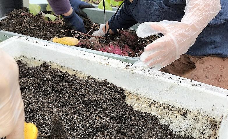 6階にあるウッドデッキではご入居者様とスタッフで陽にあたりながら、さまざまな野菜を育てています。毎日の水やりや土いじりをしながらの収穫、さらにはそこで取れた野菜で作る手作りピザなど、ご入居者様とスタッフがいっしょに楽しめる時間を何より大切にしています。