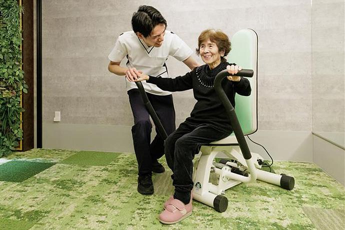 リハビリに取り組まれるご入居者様 機能訓練指導員がお一人おひとりのお身体の状態 に合った個別のリハビリをご提案。
