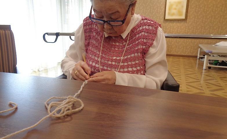 2025.08.21昔を思い出しながら~編み物~当ホームではリハビリの一環として編み物を行っています。「昔、カバンとか編んでたのよ」と昔のことを思い出しながら編まれているご様子のご入居者様。手指だけでなく、完成した状態を思い浮かべながら制作されるため、頭の運動にもなると人気となっています。今回はベスト作りに挑戦され、現在は2着目を制作中です。