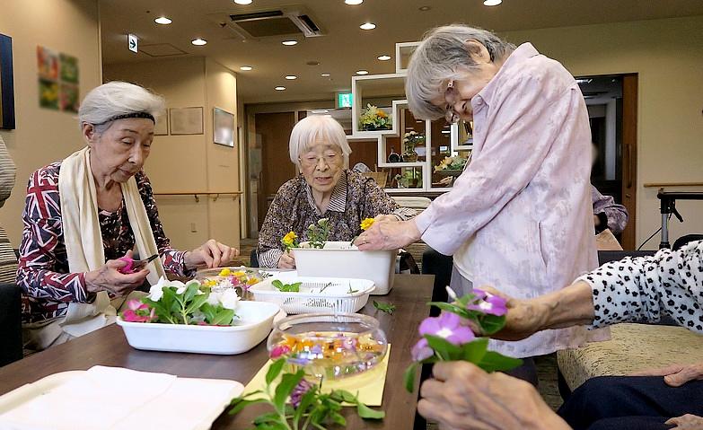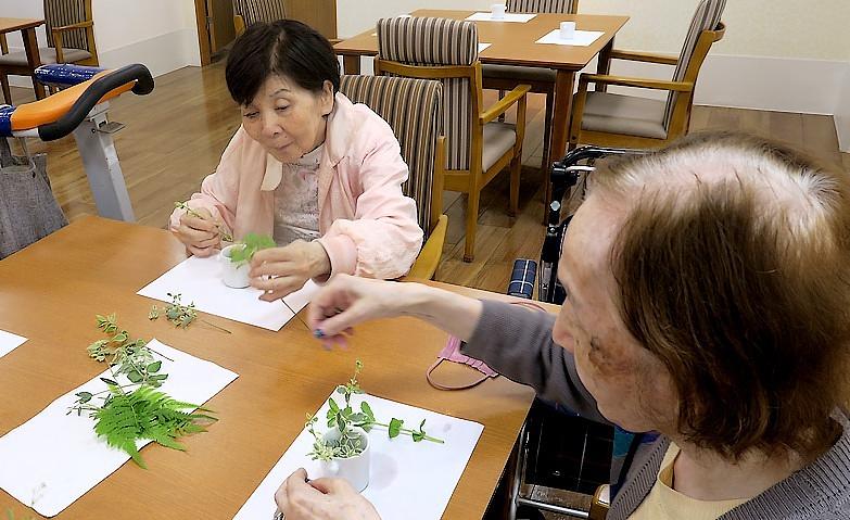 ホームの園芸活動は、外部からお招きした園芸の講師の指導のもと通常週2回行っています。園芸活動は、植物を通して四季を感じるほか、種をまく、土を耕す、水をあげるなど様々な工程で手足を使うため、リハビリの効果も期待できます。収穫したイチゴを使ったジャムづくりや、摘んだお花の押し花づくりなど、お身体の状態に関わらず植物を通して五感を刺激できるような活動を実施しています。