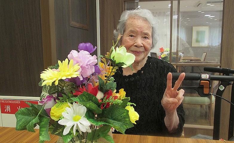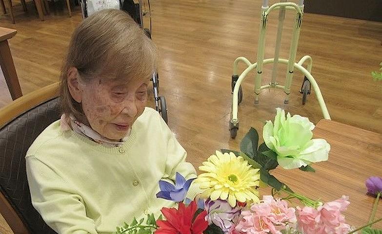 2025.12.04センスが光っています先日、フラワーアレンジメントを楽しまれたご入居者様。生花のように見えますが、なんとこちらは造花なんです。色や大きさのバランスを考えながら花選びをされ、想像をふくらましながら整えていかれます。個性豊かな作品に仕上がりました。