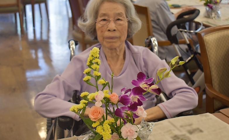 2025.09.28「いいのができました」先日、ホームでフラワーアレンジメント教室を行いました!皆様はそれぞれ個性豊かで、迷わずアレンジを作られる方や、どこにお花を挿そうかじっくり吟味して作られる方とさまざまでしたが、皆様最後は「いいのができました」と笑顔を見せてくださいました!