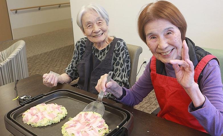いきいきと調理されるご入居者様 ご入居者様の「やりたいこと」が実現できる環境づくりに努めています。