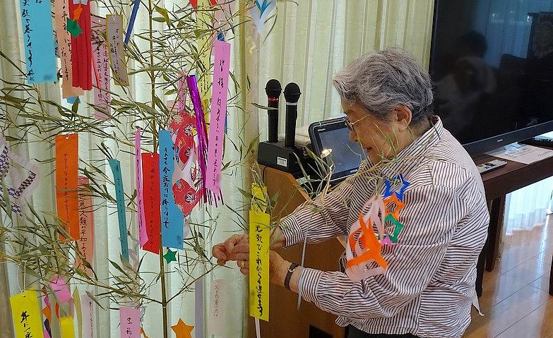 2025.07.07七夕アクティビティ7月7日七夕の日に、短冊と装飾を笹に飾りつけるアクティビティを行いました。皆様はすてきな願い事を書かれており、スタッフ一同温かい気持ちになりました。この日のために装飾を作ってくださっていたご入居者様もいらっしゃり、すてきな七夕になりました。