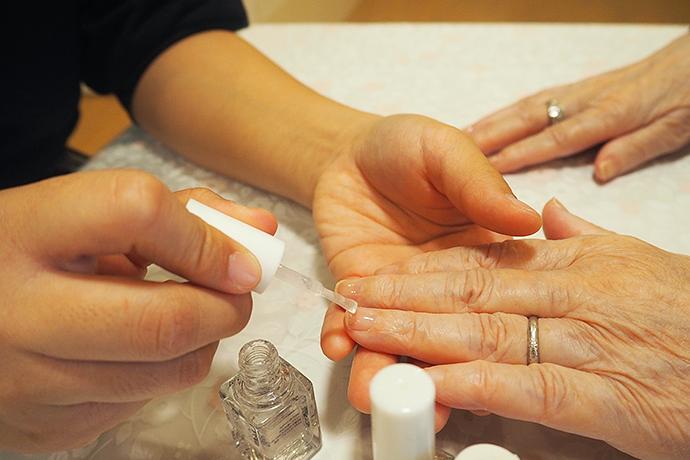 「まどか武庫川」では「ネイルサロン」アクティビティを定期的に開催しています。日常の中の些細な変化ではありますが、その些細な変化を通じて、ご入居者様ご自身の「自分らしさ」や会話のきっかけにつながっています。こうした小さなきっかけが、やがて日常に彩りをもたらすよう、大切な時間としてお過ごしいただいております。