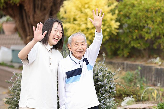 ホームの近隣をお散歩 お一人おひとりの「やりたい」を大切に。スタッフと1対1で過ごす『くららの時間®』※