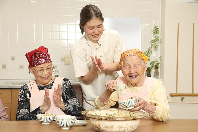 料理アクティビティで炊き込みご飯を作られるご様子 お仲間と笑顔を共有しながら過ごす「第二の家」