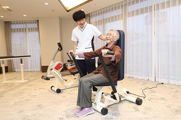 「今できること」を続け、いきいきとご自分らしい暮らしをお送りいただくために、ご入居者様お一人おひとりのお身体の状態やご要望に応じて、生活の質(QOL)の向上を目指す多様なプログラムを機能訓練指導員が個別のリハビリプランを作成いたします。リハビリの先にある「〇〇したい、やってみたい」という想いに寄りそい、いつまでもご自分らしい生活をお送りいただけるよう、多彩なメニューをご提案させていただきます。