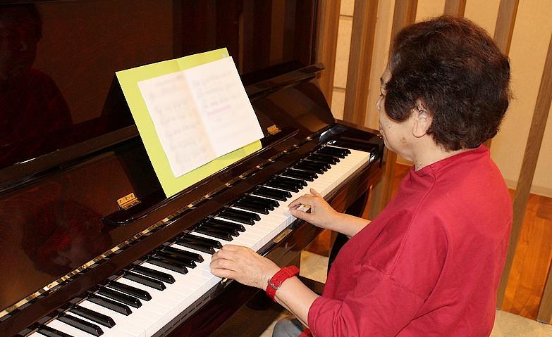 2025.05.14お好きな曲をいつまでも「鎌倉碧邸」には音楽の専門スタッフがおり、ご入居者様に合わせた音楽活動をサポートしています。長年、音楽鑑賞がご趣味のこちらのご入居者様。交響曲がお好きとのことで、音楽の専門スタッフとともにピアノ演奏をされました。「昔を思い出すな~」と曲の思い出話にも花が咲きました。