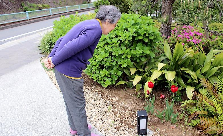 2025.06.11お庭をお散歩春になり、当ホームのお庭に少しずつお花が咲き始めました。季節を感じられるお散歩は、ご入居者様の楽しみのひとつです。こちらのご入居者様は、チューリップをご覧になり足を止められました。「あら、かわいいねぇ」と笑みがこぼれていました。
