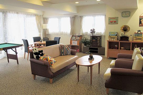 中庭に隣接するラウンジやダイニングルーム兼機能訓練室には日の光が差し込み、中庭の緑や花々を眺めることができます。ダイニングルーム兼機能訓練室では日々の介護予防体操やアクティビティの活動、読書、ティータイムなど寛ぎの時間をお過ごしいただくことができます。また3階と4階のティールームでも自由にゆったりと過ごしていただけるようにインテリアに工夫を凝らしています。