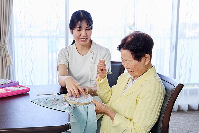 ご入居者様の「やりたい・やってみたい」の想いを大切に。想いの実現に向けたアクティビティの企画や、お一人おひとりのご生活に合わせたリハビリプログラムのご提案に努めます。