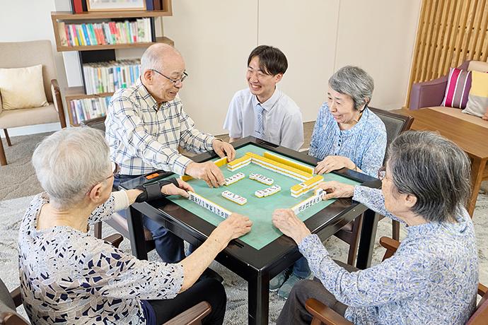 麻雀アクティビティをたのしまれるご様子 「やりたい・やってみたい」の想いを大切に。ご意見を反映させたアクティビティを企画しています。
