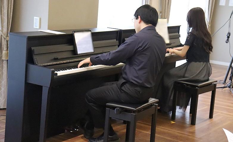 スタッフとピアノを演奏されるご入居者様 新しい楽しみの発見や、新しい自分との出会いをお手伝いいたします。