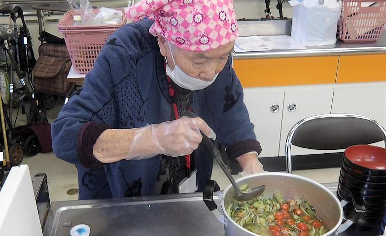 料理されているご入居者様 ご入居者様のご希望を大切に。ご希望を取り入れたアクティビティや、外出の機会をご用意しています。
