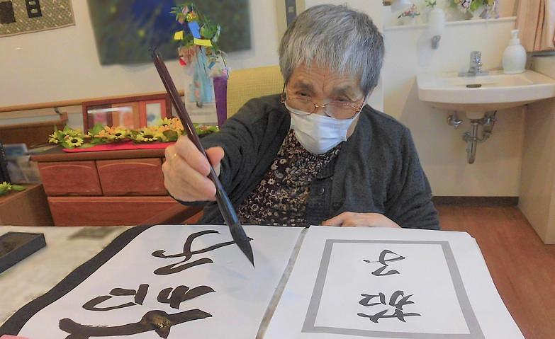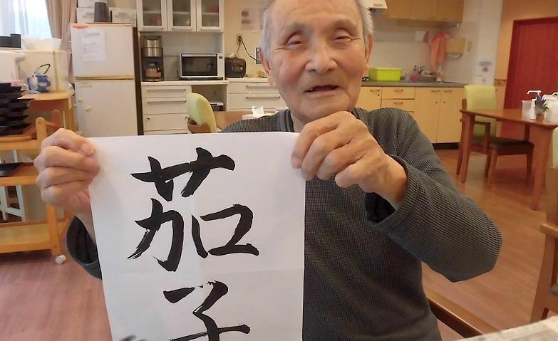 2025.08.22私の趣味の時間普段から居室で書道をされているご入居者様。この日は、ご自身でベランダで育てていらっしゃる「なす」を題材に、リビングルーム兼食堂兼機能訓練室で書道をされていました。周りでご覧になっていたご入居者様からも「うまいねー!さすがだ」などの温かい声が飛び交っていました。なすの収穫も楽しみですね!