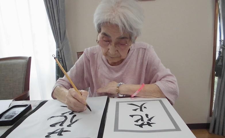 2025.08.26書道クラブ「私、お習字好きなの!いいわよね~」と、書道クラブを楽しみにされているご入居者様。今回は夏にちなんだ文字を書かれました。筆を持たれるとあっという間に表情が変わり、集中して一筆一筆丁寧に書かれていました。書き終えると、「うまく書けたかな?見てちょうだい!」とスタッフに見せてくださり、「また書きたいわ!」と次回の開催を楽しみにしていらっしゃるようでした。