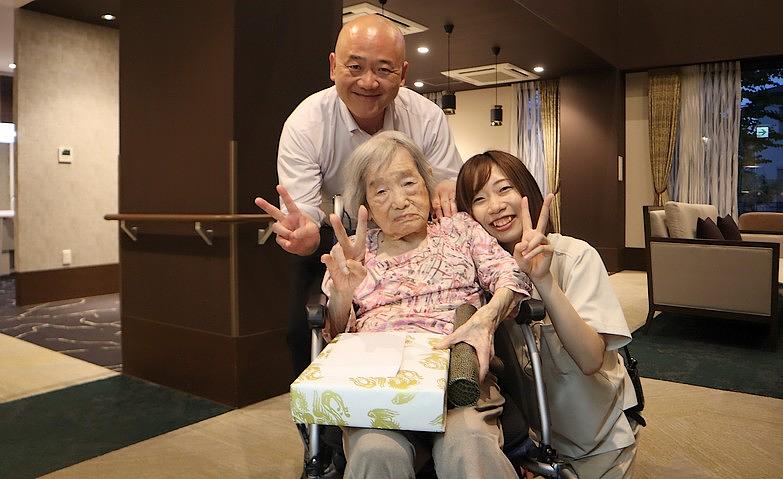 2025.06.26お誕生日のお祝いご入居者様のお誕生日には、お花をプレゼントさせていただいています。本日は居室にてお祝いをさせていただきました。いつまでもお元気でお過ごしください!