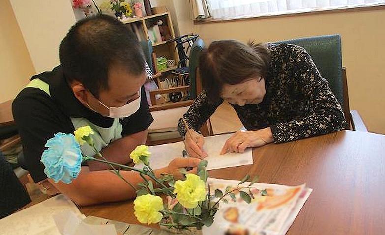 2025.07.27お花作り8月23日にホームで夏祭りを開催する予定です。開催に向けて、皆様で一緒に装飾品の準備をされています。お花を作っていますが、初めは「できるかしら?」と不安そうなお声もありましたが、始まるととても真剣な表情で1枚1枚丁寧に広げていらっしゃいました。完成品をご覧になって「とてもきれいね!」と笑顔の花が咲きました。