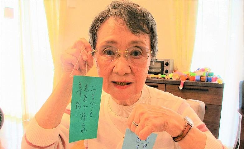 2025.09.15日頃の感謝を込めて敬老の日に、ご家族様とスタッフが想いを書いた折り鶴をカードにつけて、皆様にお渡しいたしました。思いがけないプレゼントに皆様は大変喜んでくださいました。お手紙を何回も読み返して「ニッコリ」微笑んでいらっしゃいました。