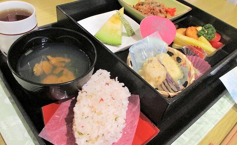 2025.09.07松花堂弁当先日の昼食は、夏らしいお食事として松花堂弁当を提供させていただきました。焼きそばや揚げ物など、夏の縁日らしいラインナップです。普段あまりメニューに入らないものもあり、ご入居者様の皆様からは「夏らしくていいね」と大変好評でした。これからもご入居者様に喜んで召し上がっていただけるようなお食事の提案をさせていただきたいと思います。
