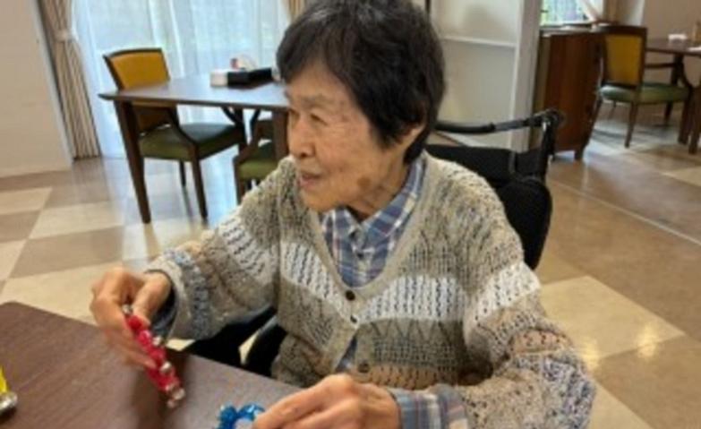機能訓練指導員による専門性を活かしたリハビリを実施しています。また、楽しみや認知機能の維持、向上を図る、手先を使う手芸や小物づくり、脳トレなどアクティビティも機能訓練指導員が担当し、皆様とのかかわりを深めています。看護職員や介護職員と連携し、その方らしい暮らしが続けられるよう、努めています。