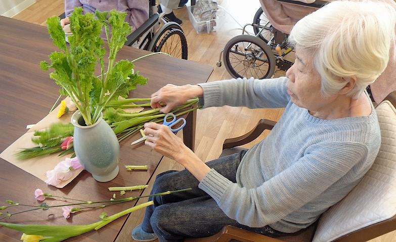 フラワーアレンジメントのご様子 体操やアクティビティ、季節のイベントなど、ホームの中でも活動的に過ごしていただけます。