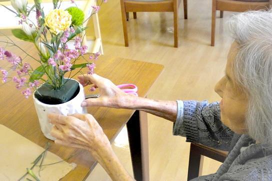 日々のアクティビティでは、フラワーアレンジメントや折り紙教室、料理など、皆様のご希望もうかがいながら、これまで続けてこられたことの継続や新たな趣味を見つけていただくお手伝いをしています。