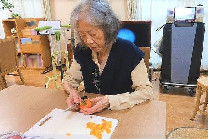 慣れた手つきで調理されるご入居者様 「やりたい、役に立ちたい」の想いの実現に向けたお手伝いを。