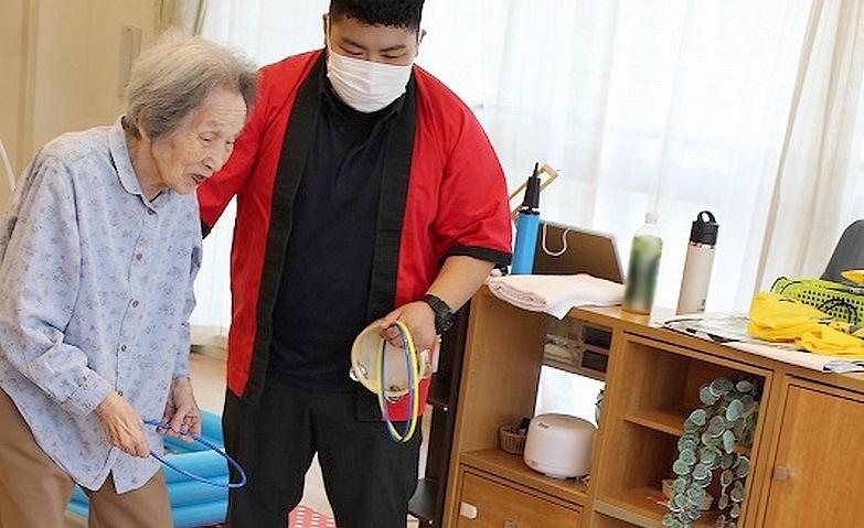 機能訓練指導員が作成する個別のプランのもとに行う個別リハビリでは、お身体の状態やご要望に合わせて、生活の質(QOL)の向上を目指した多様なプログラムを機能訓練指導員がご提案。このほかにも、足腰が不安な方の筋力維持を目的とした体操や、リハビリ機器を使用した運動などを通して機能向上や精神面(こころ)のサポートを図ります。歩行訓練などは、機能訓練指導員の作成したリハビリプランのもと介護職員が行い、安心感のある生活を送っていただけるようお手伝いをさせていただきます。