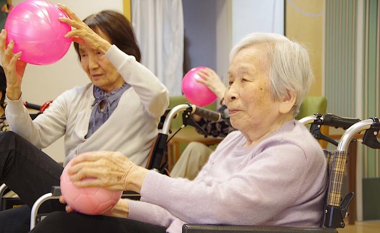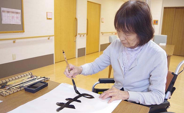 当ホームでは各フロアごとに、毎日アクティビティの時間を設けています。アクティビティのメニューは、ご入居者様のご希望を取り入れつつ、日々のご参加される様子をみながら設定しています。書道や折り紙、脳トレアクティビティも人気があるほか、体操やハンドベル演奏、ボッチャも定期的に実施しています。各アクティビティは車椅子をご利用の方にもお楽しみいただけるように、工夫をして実施しています。