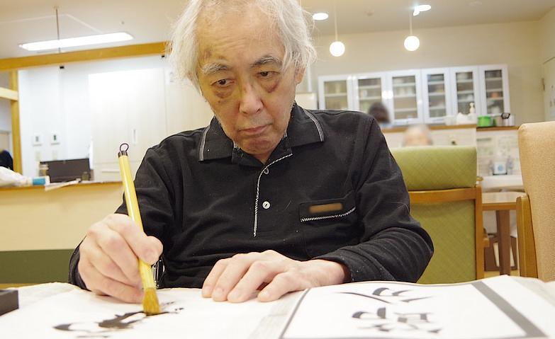 習字をされているご入居者様 得意だったことやお好きなことを、もう一度
