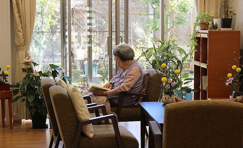 中庭に面した、やわらかな日差しが心地よいテラスでは、季節の移り変わりを感じていただくことができます。中庭にはご入居者様にお手入れいただいた季節のお花や野菜が並び、身近に自然を楽しんでいただける空間になっています。