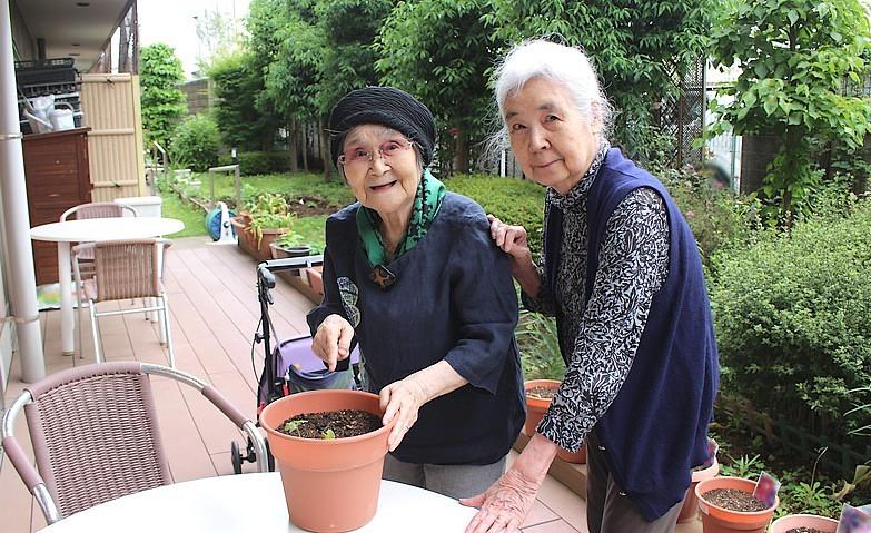 「ボンセジュール南浦和」の中庭では、園芸がお好きなご入居者様が主体となって季節のお花や野菜を育てており、身近に自然と感じることができるとあって、人気のスポットとなっています。中庭で収穫したお野菜は、料理倶楽部の活動で調理し、皆様でおいしく召し上がっていただいています。