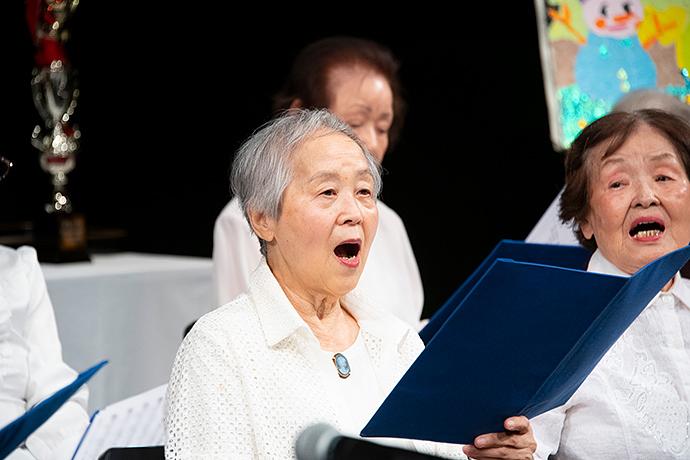 埼玉にあるベネッセの9ホームが集まり、通常年1回、外部会場で「コーラス フェスティバル」を開催しています。ご入居者様は、約1年前から積み重ねてきた練習の成果を披露されます。本番に向けて「もっと抑揚をつけた方がいい」「本番は衣装をそろえましょう」など、日々の練習にも熱が入ります。ホームの枠を超え、近隣のベネッセのホームとの交流の中で、コミュニティの輪が広がる機会にもなっているようです。
