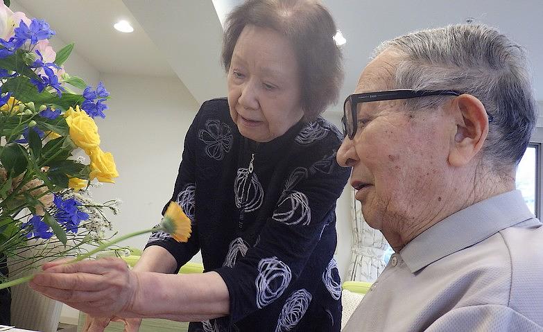 2025.10.22お花で輝く笑顔ご入居前に趣味で華道をされていたご入居者様。ホームがきれいになるように生け花をお願いしました。「きれいでしょ」と色鮮やかに咲いているお花と同じくらい、ご入居者様の笑顔は美しかったです。もっとすてきなお花をご用意しますので、ぜひまたお願いします。皆様もホームにお越しの際はこちらの作品をご覧になってくださいね。