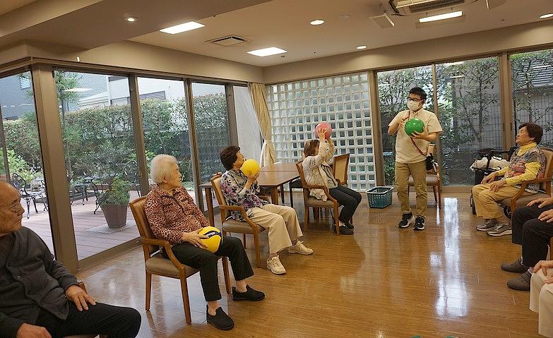 2025.11.18体操で汗を流します「グランダ武蔵浦和」では通常午前中に「転倒予防体操」を実施しています。スタッフが講師役となり、ラジオの体操からスタートです。毎日参加される方、時々顔を見せてくださる方などさまざまな方がいらっしゃいます。参加される方のなかには「今日は少しむずかしかったわ」などと体操を楽しんでくださっているご様子。皆様、いつまでもお元気でお過ごしてください!