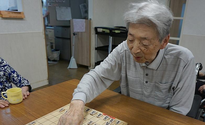 2025.10.16腕試し⁉午後のコーヒータイム中のダイニングルーム兼機能訓練室にて、真剣に盤を見つめていらっしゃるご入居者様を発見。お声がけすると「一局やりませんか?」と盛り上がったとのこと。コーヒーを飲み終わる前に決着がつく予定だったそうですが、実力伯仲のようです。次回は、囲碁で勝負されるそうですよ。